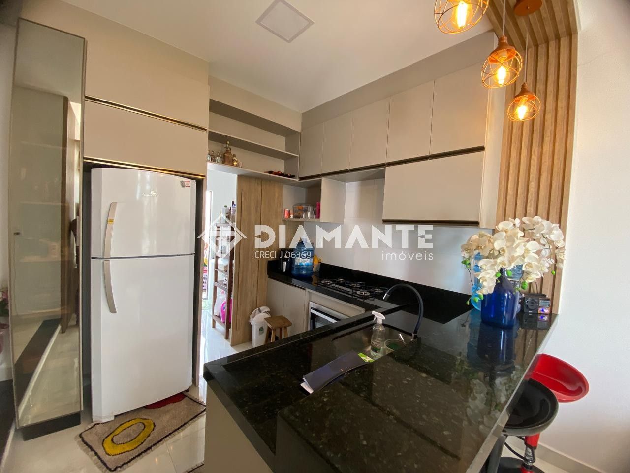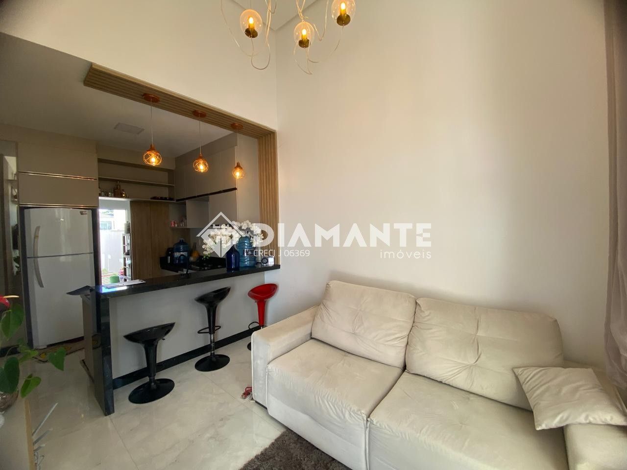 Cada detalhe foi cuidadosamente planejado: os móveis sob medida trazem praticidade e elegância, enquanto a iluminação com lustres e pendentes confere um toque de bom gosto e sofisticação.